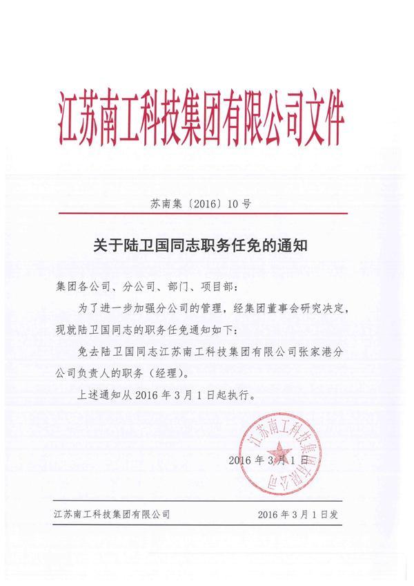 您的位置:集团首页 >> 新闻中心 >> 集团公告 >> 关于陆卫国同志职务任免的通知