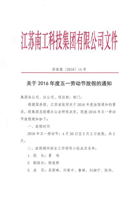 您的位置:集团首页 >> 新闻中心 >> 集团公告 >> 关于2016年度五一劳动节放假的通知