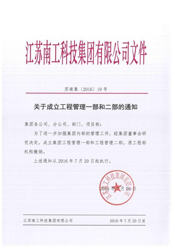 关于成立工程管理一部和二部的通知