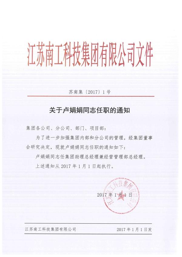 您的位置:集团首页 >> 新闻中心 >> 集团公告 >> 关于卢娟娟同志任职的通知