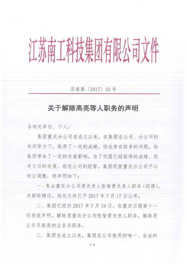 您的位置:集团首页 >> 新闻中心 >> 集团公告 >> 关于解除高亮等人职务的声明
