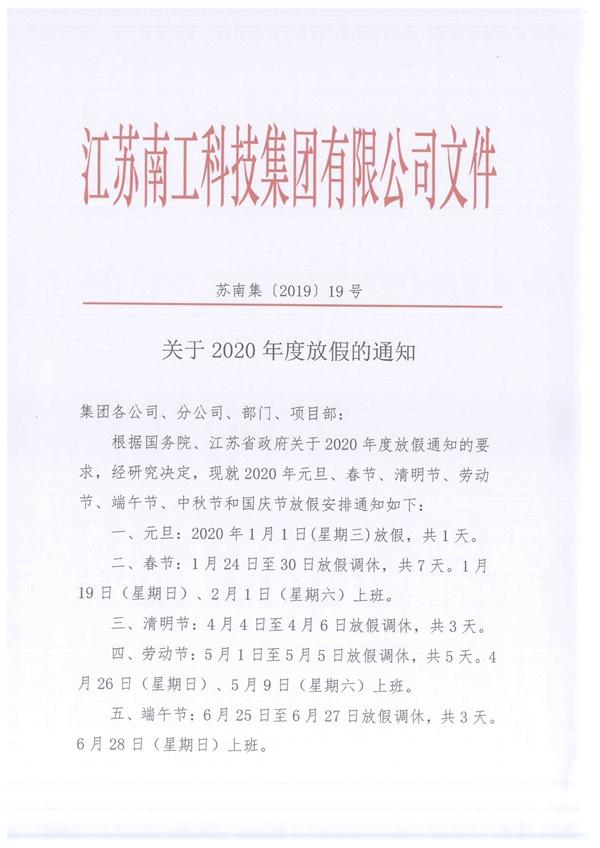 您的位置:集团首页 >> 新闻中心 >> 集团公告 >> 关于2020年度放假的通知
