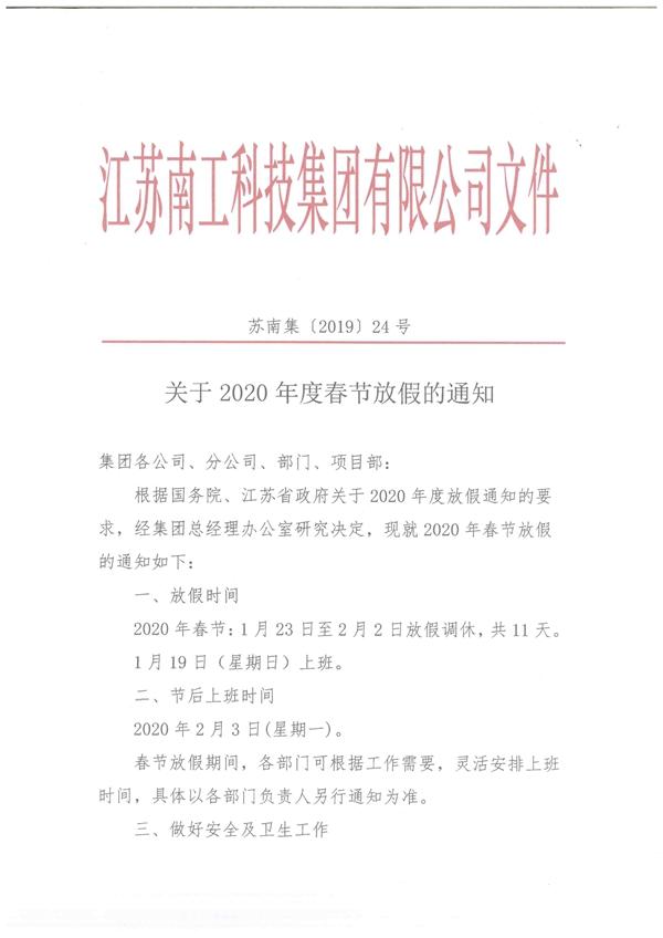 您的位置:集团首页 >> 新闻中心 >> 集团公告 >> 关于2020年度春节放假的通知