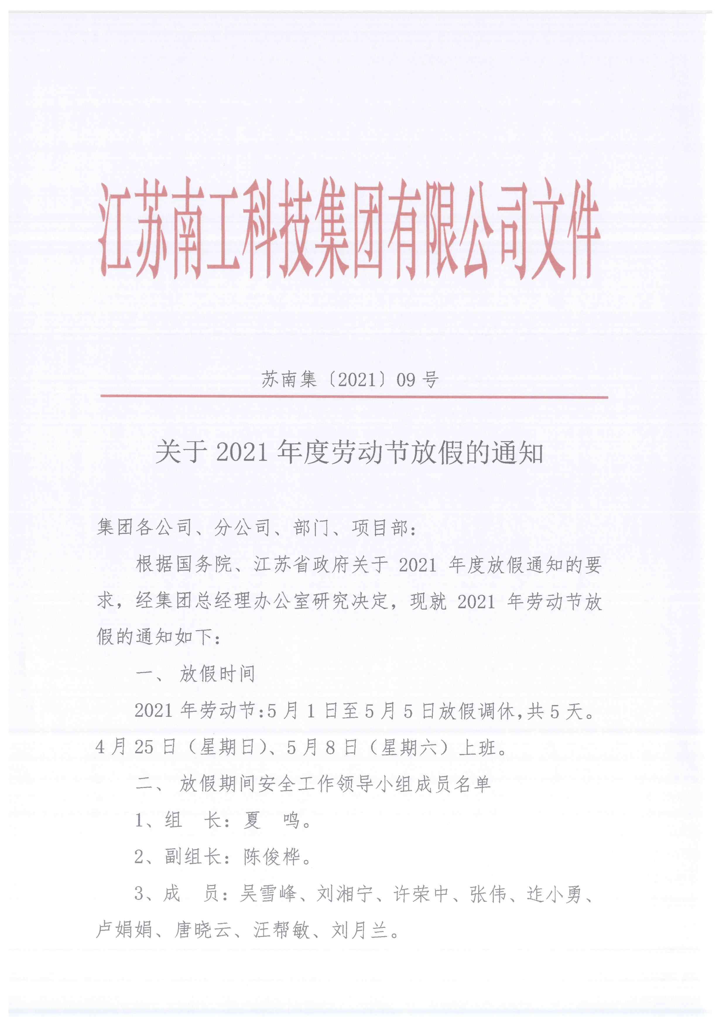您的位置:集团首页 >> 新闻中心 >> 集团公告 >> 关于2021年度劳动节放假通知