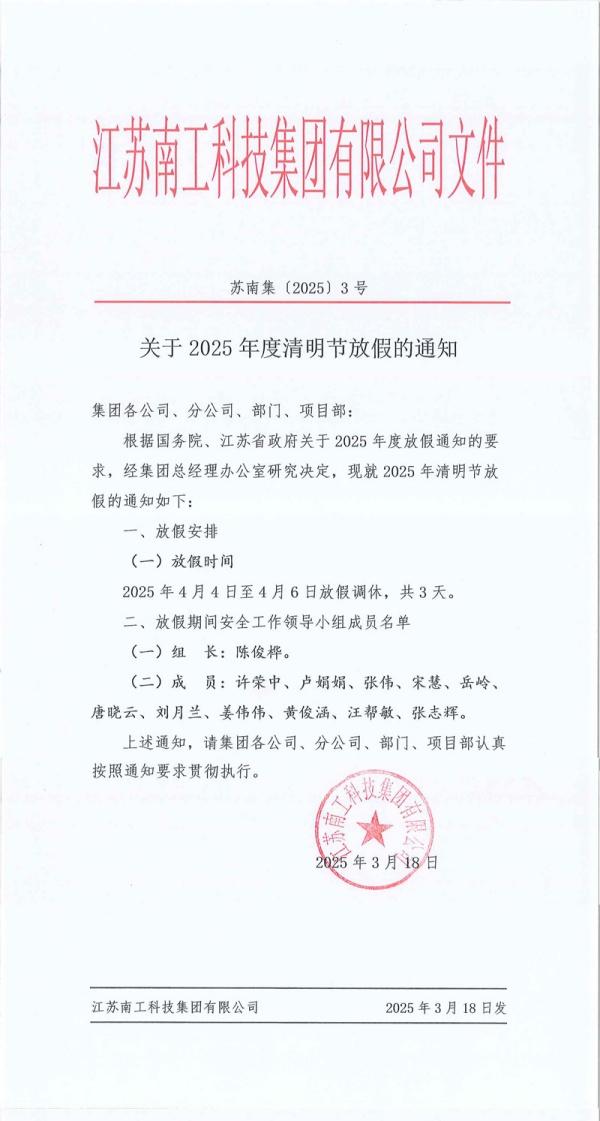 您的位置:集团首页 >> 新闻中心 >> 集团公告 >> 关于2025年度清明节放假的通知
