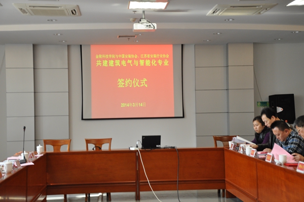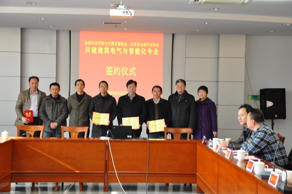 2014年3月14日,金陵科技学院与中国安装协会智能化与消防工程分会、江苏省安装行业协会智能消防电子专业委员会签订了共建“建筑电气与智能化专业”的协议。出席协议签订仪式的有金陵科技学院副校长冯年华、金陵科技学院教务处副处长吴钟鸣、金陵科技学院机电工程学院院长鞠全勇、党总支书记赵士安、副院长周扩建、郑李明、副书记陈建、楼宇系主任牟福元等领导和老师。江苏省安装行业协会会长邹金林;中国安装协会智能化与消防工程分会会长、江苏省行业协会智能消防电子分会会长、江苏k8凯发科技集团有限公司总经理陈晓;分会秘书长助理余晶等出席了会议。