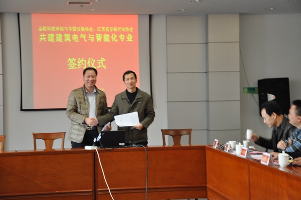 金陵科技学院、中国安装协会智能化与消防工程分会、江苏省安装行业协会智能消防电子专业委员会等三方共同签订了共建“建筑电气与智能化专业”协议书。