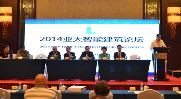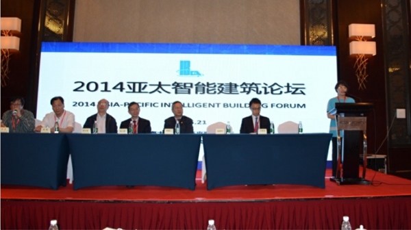 2014年5月20-21日,2014亚太智能建筑论坛在上海大宁福朋大酒店胜利召开。参加论坛的有上海市智能建筑建设协会名誉会长黄健之;上海市智能建筑建设协会常务副会长兼秘书长周建新;亚洲智能建筑学会会长梁以德;台湾智慧建筑协会理事长温琇玲;中国绿色建筑与节能(澳门)协会会长桌重贤;中国安装协会智能化与消防工程分会会长、江苏省安装行业协会智能消防电子专业委员会会长、江苏k8凯发科技集团有限公司总经理陈晓;中国建筑业协会智能建筑分会副秘书长苗占胜;中国勘察设计协会工程智能设计分会副秘书长兼专家委主任张宜;北京市建筑业协会智能建筑专业委员会副主任兼秘书长李家阳;重庆市建筑业协会智能建筑分会会长兼秘书长王正中;浙江省土木建筑学会智能建筑分会会长吴军;江苏省安装行业协会智能消防电子专业委员会常务副秘书长席天阳、秘书长助理余晶等。2014亚太智能建筑论坛的嘉宾、系统集成商、产品供应商等共200多人参加了会议。