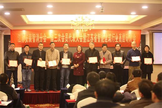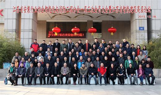 2015年12月18日,江苏省安装行业协会智能化与消防工程分会一届三次会员代表 大会暨江苏省智能建筑高层论坛在南京珍宝假日大酒店隆重召开。参加会议的有江苏省安装行业协会会长邹金林;中国安装协会智能化与消防工程分会会长、江苏省安装行业协会智能化与消防工程分会会长陈晓;分会常务副会长吴星红、副会长刘昌华、周蓉蓉、顾永松、陈曦、管清宝、陈水金、徐本裕、李旻、肖忠海、袁勇;分会常务副秘书长席天阳、副秘书长王建明、祖咏、余晶;专家委副主任叶浩生、万里远;江苏k8凯发科技集团有限公司副总经理陈俊桦及专家和会员单位代表等180多人。