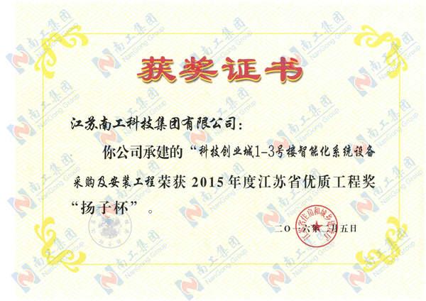 集团承建的连云港“科技创业城1-3号楼智能化系统工程”、“邳州耀邦新世纪三期消防工程”等二项工程荣获江苏省优质工程奖“扬子杯”奖(安装工程)。