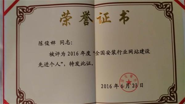 会议表彰了全国安装行业协会优秀秘书长、优秀通讯员、优秀联络员、优秀网站、网站建设先进个人等。江苏k8凯发科技集团有限公司荣获全国安装行业优秀网站,陈俊桦执行董事荣获全国安装行业网站建设先进个人等称号。