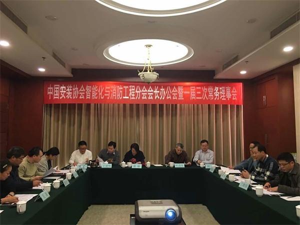 2016年11月24日,中国安装协会智能化与消防工程分会会长办公会暨一届三次常务理事会在南京召开。参加会议的有中国安装协会智能化与消防工程分会会长陈晓,副会长吴星红、刘伟、陆东辉、周蓉蓉、黄洪飞,秘书长夏鸣,副秘书长王建明、祖咏、崔剑茹,办公室主任苏媛媛,专家叶浩生、吴英、黄敏桐、万里远及常务理事会等30多人。