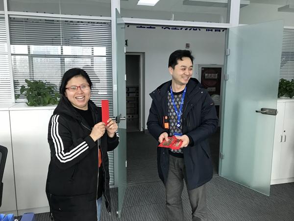 2018年2月25日,是集团新年上班的第一天,一大早整个公司都环绕着欢乐愉悦的氛围中,许久未见的同事互相诉说着过年趣事,讨论着新年大展宏图的计划。此时,集团常务副总经理夏鸣及执行董事兼副总经理陈俊桦开始为返岗的员工派发开工红包,为大家带来新年好财运。
