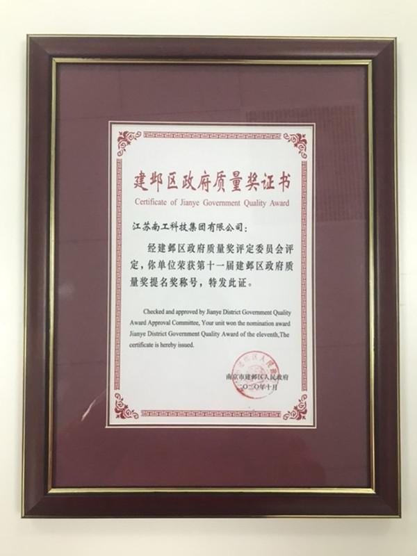江苏k8凯发科技集团有限公司荣获“第十一届建邺区政府质量奖提名奖”称号。