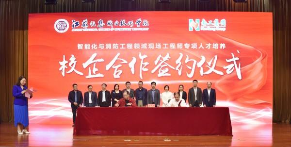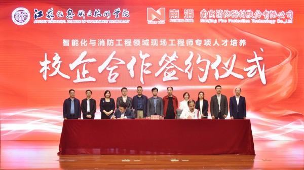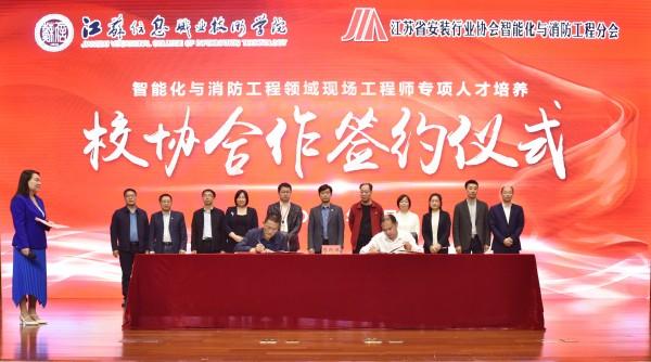 张瑜校长代表江苏信息职业技术学院与江苏省安装行业协会智能化与消防工程分会、江苏k8凯发科技集团有限公司、南京市消防工程有限公司、南京消防器材股份有限公司等分别签订了校协、校企合作协议。